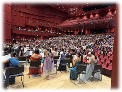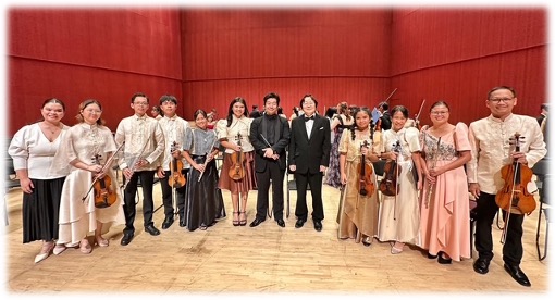 フイリピン・香港から26人参加、フイリピンは民族衣装で演奏されました。昨年も参加されました。 当日は朝から沢山のボランティアの保護者、男子高学年団員たちがステージを作ってくれました。感謝 また前日のリハーサルでは、北海道、愛媛など遠方から参加してくれた団員や指導陣の交流が盛んに 行われました。私は16人の講師たちと夏の初級者合宿に利用した本庄市のサンデン研修施設に宿泊 早朝のシャワーが使えないハプニングもあり、コンビニで朝食を買って食べながら会場に向かいました。 NPOの理事を中心にオーケストラ、合唱団を最後までサポートしてくれて助かりました。私も10数年ぶりに第九の合唱に参加。高崎市少年少女オーケストラの島津団長さんと一緒に熱唱して感動を分かち合いました。多くのジュニア卒業生たちが演奏や合唱にも参加して現役の子供たちを盛り上げてくれました。 1988年の太田市市制40周年の第九全楽章演奏(中島文部大臣来席)をスタートに、1989年は180人でアメリカ公演、愛知万博(2005年)、スメタナホール(プラハ2008年)など第九の演奏を世界中で演奏。