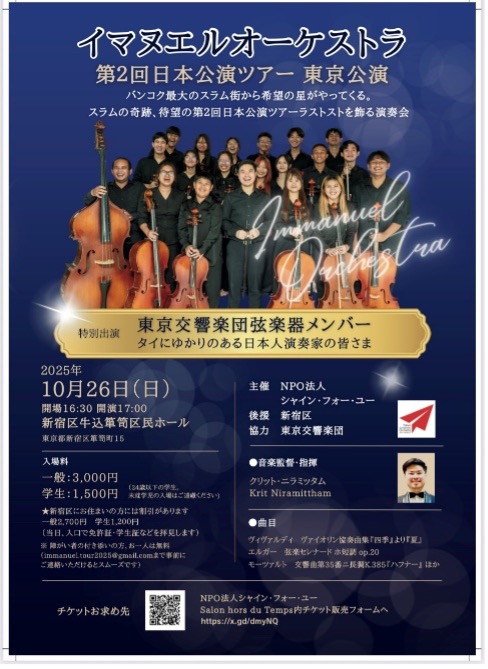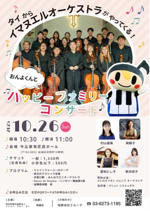 10月26日(日) 新宿区牛込箪笥ホール イマヌエル青少年オーケストラ(タイ)交流演奏会