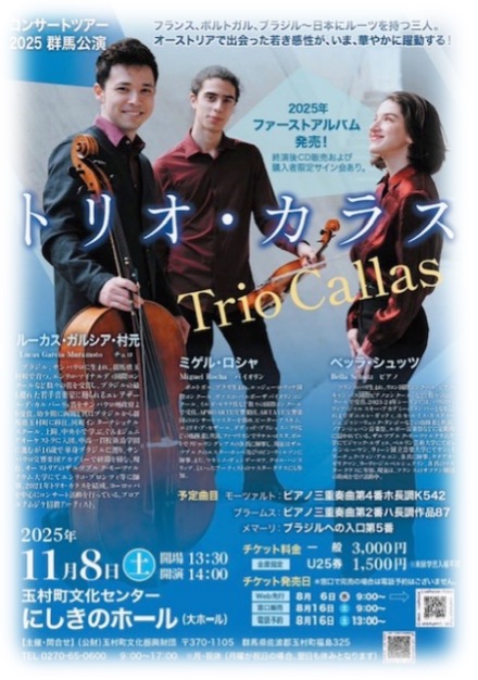 11月8日(玉村文化センター)で、ザルツブルグ(オーストリア)のモーツアルト音楽大学大学院に留学している ぐんまJr.の卒業生のルーカス君(日系ブラジル人)が楽友たちと演奏会をします。演奏会後にパーテイーも予定しています