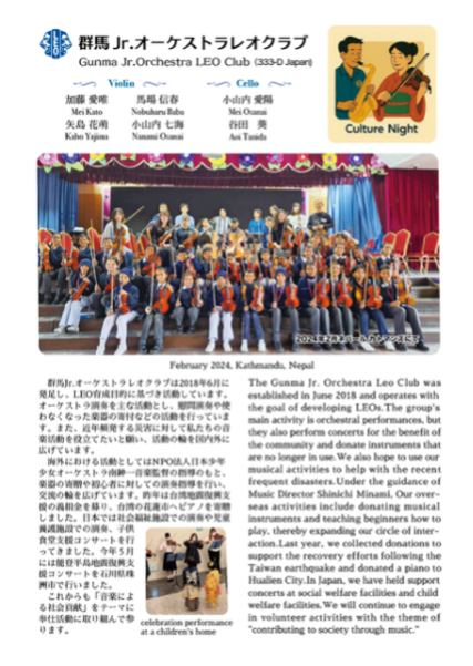 11月7.8.9日は、レオクラブのオセアルレオフォーラム2025が大阪で開催されます。群馬レオクラブは会長の加藤愛唯など 6人が、民族パーテイーで着物を着て演奏を予定しています。国際的に知名度が上がるといいですね。