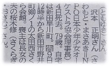 長年にわたりNPO理事長として私たちの活動のご支援を頂いていた沢本正明氏が、病気により1月4日 亡くなられました。1月9日太田市で行われた葬儀には、NPO理事7名が列席して全国25団体の代表として、ご冥福をお祈りして来ました事をご報告いたします。今後新理事長の選出について注目してください。